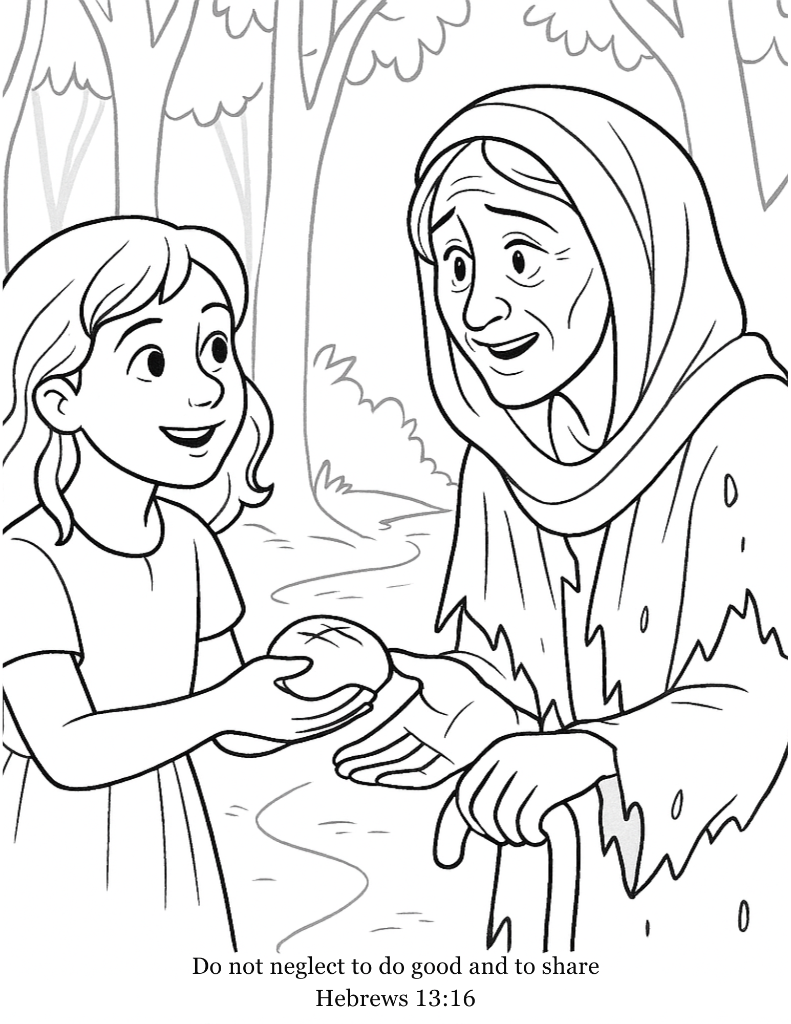 This verse reminds us that sharing and doing good things for others makes God smile! Whether it's helping a friend, giving to someone in need, or showing kindness just because—every small act of love matters. As kids color this page, they’ll remember that living like Jesus means thinking of others, not just ourselves.
